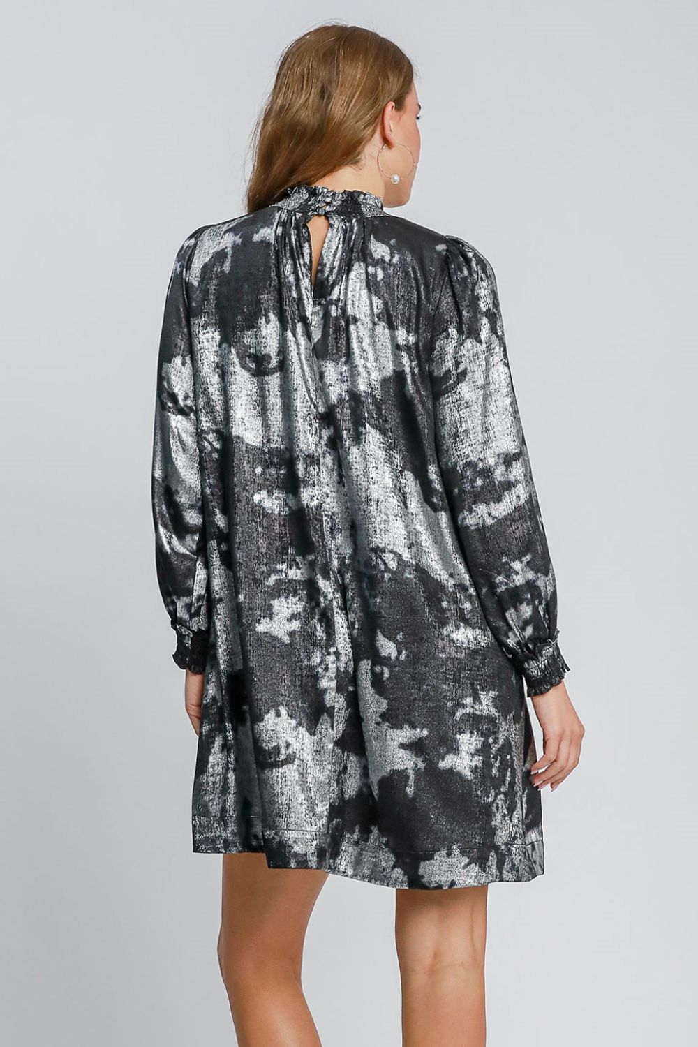 Umgee Full Size Mock Neck Flounce Sleeve Metallic Dress Plus Size